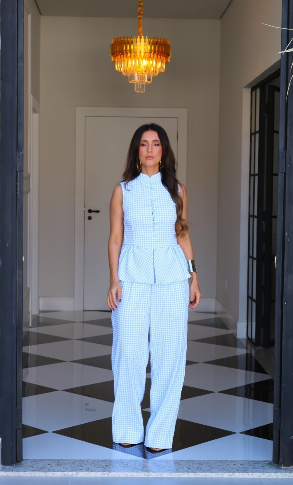 Calça de alfaiataria,modelagem reta, peça confortável e elegante. Possui pregas na frente, bolsos nas laterais, seu fechamento é por zíper e colchete. Além de possuir passante para cinto